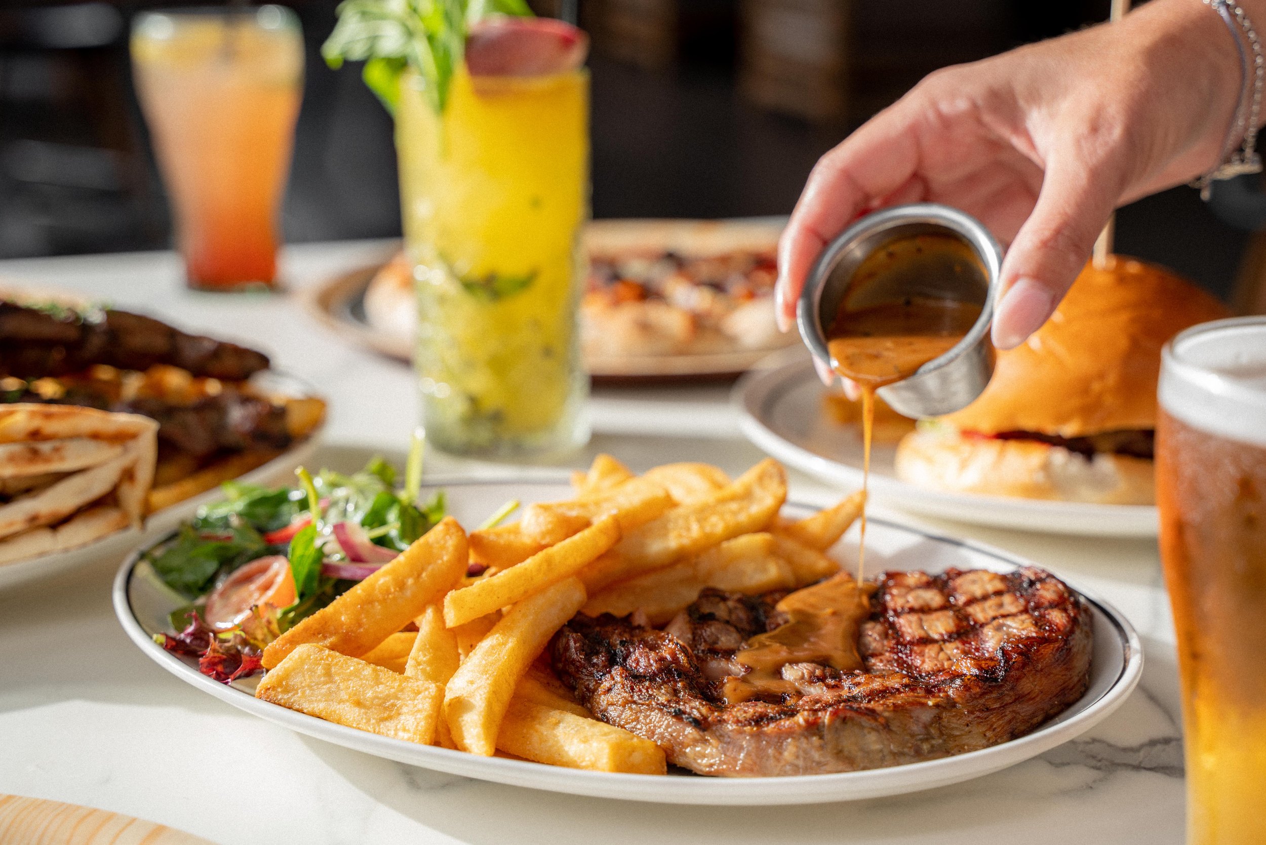We pride ourselves on our Steaks, Pizzas, Burgers and Salads. The Colonial boasts an outdoor dining area as well as large banquet style seating and communal tables.
